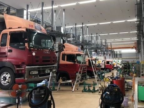 自社のトラックの整備なので、余裕を持った整備ができます。適正な担当物量で無理なく続けられる環境