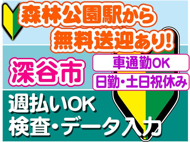 森林公園駅から無料送迎有 深谷市で完成品の検査・データ入力 人気の日勤で土日祝休み 時給1,350円