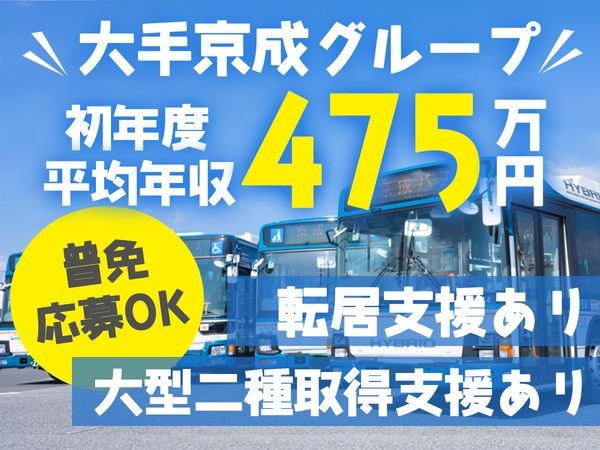 職種/仕事内容 | 仕事内容 ※営業所により運行形態が異なるため、「職種」に記載の内容は一例です。 当社は、鉄道・バスの運輸業をはじめ、7分野の事業を展開する京成グループの一員です。 安定した経営基盤を構築し、「働きやすい職場認証制度」の二つ星を獲得するなど 社員一人一人が働きやすい優れた就業環境を整えています! そんな当社でバス運転士を募集中です! 大型二種免許の取得を支援する養成制度もあり、未経験の方も大歓迎! まずはお気軽にご応募ください♪ ▼仕事内容 バス運転士として、様々なシーンでご活躍いただきます。 ・路線バス ・コミュニティバス ・企業送迎バス ・高速バス ・ショッピングモールの貸切バス など ▼バス運転士の1日(※勤務例) 5:30 出社・タイムカード記録 アルコール検査、点検、始業点呼 5:55 出庫・運転業務 9:00 入庫・車内点検・休憩(食事) 10:15 出庫・運転業務 13:30 入庫・点検、給油、清掃 13:40 アルコール検査、終業点呼 ▼当社の魅力 ○ドライバー職未経験でも安心の教育体制! ○大型二種免許取得費用をサポートする「運転士養成制度」あり! (応募時年齢55歳以下の方が対象) ○福利厚生や再雇用制度、育児と仕事を両立できる制度が充実! ○賞与は年2回、基本給の5ヶ月分相当で安定の収入! ○転居支度金制度あり! ※配属となる営業所から10km未満の場所に転居した場合、 入社後の初回給与で20万円を支給します。(配属営業所の条件あり) ▼入社後の配属・キャリアアップについて <入社後の配属について> 選考試験受験時に下記営業所から配属希望を第3希望まで伺います。 ご希望に沿えない場合もありますが、最大限考慮します。 ・江戸川営業所(東京都江戸川区東篠崎1-9-1) ・奥戸営業所(東京都葛飾区奥戸2-9-26) ・金町営業所(東京都葛飾区金町1-12-18) ・松戸営業所(千葉県松戸市古ケ崎101) ・市川営業所(千葉県市川市柏井町4-271-2) ・新都心営業所(千葉県習志野市芝園2-7-3) ・習志野出張所(千葉県船橋市習志野4-15-15) ・千葉営業所(千葉県四街道市吉岡1181-1) ・長沼営業所(千葉県千葉市稲毛区長沼町332-2) ・新習志野高速営業所(千葉県習志野市茜浜3-7-4) <入社後のキャリアアップについて> 「運転士を定年まで続けるコース」と「管理職を目指すコース」があります♪ 前者の場合、初めに配属となった営業所から基本的に 所属の営業所が変更となる人事異動はなく、 後者の場合はキャリア形成を目的に、会社命令の人事異動があります。 【この求人のメリット】 女性活躍中 賞与あり マイカー・バイク通勤可 ---------------- 本求人はGOジョブ株式会社の採用支援サービスとなります。 お電話にてご連絡いただいた場合は、電話面談にてご希望の面接タイミングをお伺いします! 企業とのやり取りもすべて弊社側でサポートさせていただきますので、お気軽にお問い合わせください! TEL :03-6834-4439 受付時間:10時~18時 宛先 :採用担当 ---------------- |