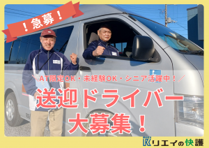 職種/仕事内容 | 募集背景 RNC300 仕事内容 〔応募はカンタン〕 ・応募はたった「1分」で完了! ・名前・生年月日など簡単な項目のみ ・WEB上での履歴書登録は不要です! 「いつもありがとう」「来てくれるのを楽しみにしていたの」と言っていただけるのが嬉しい瞬間です。 ハイエースで6~8名の利用者様のご自宅から施設までの送迎をお願いします。 車いす用リフトの操作もあります。 介護スタッフが添乗するので一人じゃありません。 目視による簡易車両点検、清掃、消毒作業、給油等をお任せすることがございます。 【安全、安心の研修が充実】運転スキルに磨きがかかります。 専任インストラクターによる丁寧な指導あり。 安心して送迎デビューするために、 施設内研修(5時間程度)新人ドライバー研修(2時間程度)を受講していただき、 見極め試験を受けていただきます。 利用者様の安心を守るための大切な研修です。 1日2時間サクッと働けます。シフトの組み方も様々。60代が活躍中、長く働いている方には70代の方も。 朝の2時間のみ、夕方の2時間のみ、朝夕両方働くなど、あなたのご予定に合わせて働けます。 もちろん交通費もしっかり支給。 長く働き続けられます。 同じ仲間は全国に130名。 60代から送迎ドライバーを始めて70代になっても活躍している方も70名います。 介護を快護へがコンセプトのデイサービス。ホスピタリティ精神が溢れるスタッフの集まりです。 目配り、気配り、心配りができるスタッフが働いているので、笑顔が溢れています。 介護スタッフと冗談を言い合うドライバーさんの姿をよく見かけます。 [こんな人が活躍] 「身体を動かす仕事が好き」 「車の運転をするのが好き」 そんなメンバーばかり集まっています。 当社で活躍するドライバーのほとんどが、 全くの未経験からの入社! 特別な知識や経験、スキルがなくても全く 問題ありません! |