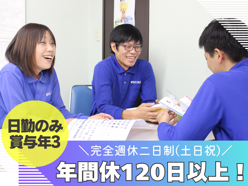 休日休暇 | 休日休暇 土日祝休み(完全週休二日制/12月を除く) 有給・夏季・年始・慶弔・介護・育児休暇あり *年間休日120日以上 ※その他、参観日・運動会等お子様の行事や家族旅行等、希望日相談に応じます. (事前に調整することで休めます) ★有給休暇支援金制度あり ※当社は健康経営優良法人認定企業です!スタッフ全員が働きやすい環境を整備しております。 |