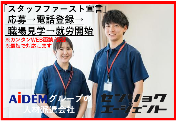栃木市・岩舟エリア 3月スタート!新着案件・時給1,450円・日払いOK☆彡倉庫内ピッキング作業☆彡 当社は、求人折込広告でお馴染みのアイデムのクループ会社として、『人材派遣・人材紹介』を行っている会社です。宇都宮支店では、栃木県内全域を担当し日々、新しいお仕事案件・派遣先の開拓をしています。当社の特徴としては、お仕事のご紹介から、派遣後のアフターフォローまでを 1人の専任担当者がそのすべてを担当します。お仕事をご応募された、アナタの希望や困り事、悩みを、寄り添って解決のお手伝いをさせて頂きます。また、お仕事やキャリアの相談、社会保険や税金等の専門的な事案には、プロフェッショナルな専用窓口を用意しております。ぜひご相談下さい。 迅速なお仕事のご紹介を実現します。戦力エージェントです