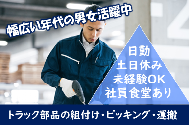 職種/仕事内容 | 仕事内容 〇未経験OK●昼勤専属〇20代の若手から50代のミドル世代まで活躍中●週払い制度あり○都内23区・川崎・横浜近郊から通勤圏内●JR「新川崎」駅、東横線「元住吉」駅から無料送迎バスあります! <仕事内容> 大手トラックメーカー関連会社での軽作業になります。 ・電動ドライバーを使って小型部品を組付けて、部品を完成させる作業です。 ・タブレット端末を操作しながら棚から部品をピッキングしてきて、ラインに搬送・払い出しする作業です。 ・あまり重たいものはないので、性別問わずスムーズの作業できます。 ライン作業となります。 立ち作業でのお仕事です。 運転作業がございます。 個人作業・グループ作業どちらもございます。 《職場環境》 男性が多い職場です。 外国籍の方が活躍中の職場です。 冷暖房完備です。 スポットクーラーがあります。 ロッカー有り|シャワールーム有り|休憩室完備|売店有り|ATM有り|診療所有り アピールポイント <仕事内容> 大手トラックメーカー関連会社での軽作業になります。 ・電動ドライバーを使って小型部品を組付けて、部品を完成させる作業です。 ・タブレット端末を操作しながら棚から部品をピッキングしてきて、ラインに搬送・払い出しする作業です。 ・あまり重たいものはないので、性別問わずスムーズの作業できます。 ライン作業となります。 立ち作業でのお仕事です。 運転作業がございます。 個人作業・グループ作業どちらもございます。 《職場環境》 男性が多い職場です。 外国籍の方が活躍中の職場です。 冷暖房完備です。 スポットクーラーがあります。 ロッカー有り|シャワールーム有り|休憩室完備|売店有り|ATM有り|診療所有り \充実した福利厚生/ ◎社会保険、雇用保険完備 ◎有給休暇有(6ヶ月経過後、10日付与)※規定あり ◎残業・休出手当 ◎交通費支給(規定内) ◎確定拠出年金制度 ◎週払い制度(週3回対応) ◎お友達推薦制度あり(規定有り) ※1名につき3万円~10万円臨時給与として支給 ◎制服貸与 ◎社員食堂あり ◎ロッカー・休憩室利用可 ◎福利厚生プログラム (宿泊、グルメ、ショッピングなど大幅割引が受けられる10万アイテムのメニューがあります。) |