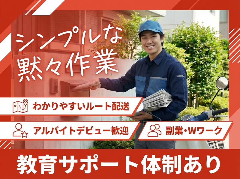 職種/仕事内容 | 仕事内容 《 求人のポイント 》 ●原動機付自転車が運転できればOK! ●未経験歓迎の新聞配達のお仕事 ●学生・フリーター・シニア応援! ●早朝2時間程度の短時間アルバイト ●年齢不問!体力的な負担少なめ! ●週3日~シフトに入れればOKです! 夜間~早朝のアルバイトを 探している方にぴったりです! 新聞配達スタッフを募集します。 ――――――――――――――― 《 仕事内容 》 決められたエリア内への新聞配達です。 集金や営業業務は一切ありませんので、 コツコツモクモク1人作業が中心です。 早朝時間帯なので交通量も少なく、 らくらくスイスイと配達できます♪ ――――――――――――――― 《 主な流れ 》 ①シフトに合わせて拠点に出勤し ②新聞を積み込み配達へ出発 ③指定ルートを確認しながら配達し ④完了したら拠点に戻って報告し完了 シンプルなコツコツ作業です。 配達ルートは既に確立されており、 覚えてしまえば安心です。 ――――――――――――――― 《 教育サポート体制あり 》 先輩スタッフによる教育研修があり、 未経験から安心してスタートできます。 【基本的な知識や進め方】 【配達の際のコツやポイント】 【気を付けた方が良い点】など、 基本的なことをイチからお教えします。 ――――――――――――――― 《 シフトについて 》 勤務日数は週3日~OKです! 最大6日までを基準として、 日数や曜日の相談にも応じます! AM2:00~6:00までの間で 1日2時間程度の勤務のため、 Wワーク希望の方にも最適です。 体力的に負担も少なく、 年齢に関係なく始められます♪ 長く働きたい方を歓迎します! |