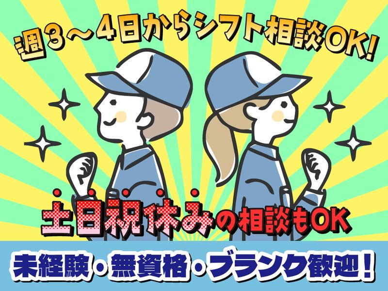 対象となる方 | 求める人材: ・高卒以上 ・年齢不問 ・経験不問(未経験OK) <こんな方を歓迎します!> ◎コツコツ&モクモク作業が好きな方 ◎オープニング店舗で働きたい方 ◎高時給で稼ぎたい方 ◎Wワークで働きたい方 <こんな経験も活かせます!> 家電量販店/販売/倉庫内作業/軽作業 倉庫管理/引越し/工場/現場作業…など ※フォークリフトなどの免許は不要です! ---------------------------------------------- |