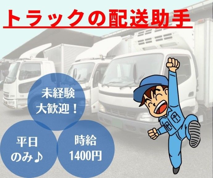 \平日のみ&経験不問◎/トラックの配送助手業務!高時給1400円×週5日勤務で安定収入GET!@摂津市鳥飼新町!車・バイク・自転車通勤可!ブランクのある方も大歓迎★50代までの幅広い年代の方が活躍中!