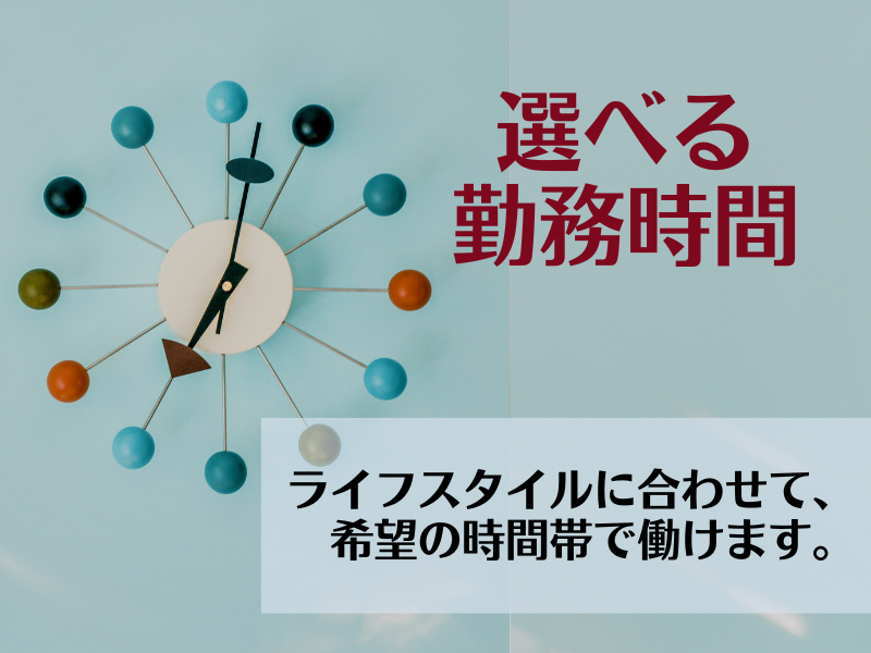 朝から・午後から時間選択OK♪ 生活スタイルに合わせて勤務!