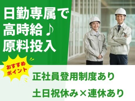 粉製品のカンタン投入作業♪資格・経験不問!土日祝休みで高時給★