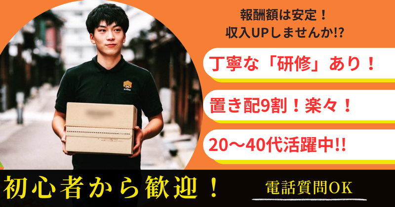 職種/仕事内容 | 仕事内容 ◌◍┈┈┈┈┈┈┈┈┈┈┈┈┈┈┈⿻*.· ▓▓▓▓▓ ⭐メインは置き配! ▓ ポ ▓ ⭐だから再配達ほぼ無し! ▓ イ ▓ ⭐初めての方もOK! ▓ ン ▓ ⭐経費を抑えて手取りUP可 ▓ ト ▓ ⭐車両があれば週2日~OK ▓▓▓▓▓ ⭐毎月インセンティブ有! ◌◍┈┈┈┈┈┈┈┈┈┈┈┈┈┈┈⿻*.· 【売上・想定業務時間等】 a.18,500円(税込)+インセンティブ 8時00分~20時00分 ※週4日~(車両持込の場合は週2日~) 着者場所 大阪府豊中市勝部 ________________ 【 ⏩業務内容について 】  ̄ ̄ ̄ ̄ ̄ ̄ ̄ ̄ ̄ ̄ ̄ ̄ ̄ ̄ ̄ ̄ 大手ECサイトの軽い荷物を配達 片手サイズ!負担少なめ◎ ✅置き配9割・ポスト投函メイン ✅受取サイン無し・現金授受ナシ! 【配達エリア】 豊中市周辺エリア スマホで全て自動ルート設定の為、 道を覚える必要が一切ありません。 [拠点] 豊中市勝部にあるセンター (岡町駅・曽根駅・豊中駅より車10分前後) 商品がまとまっているから積込簡単 →15分程ですぐ出発しています! ━━━━━━━━━━━━━━━ ⏩その他注目ポイントまとめ! ━━━━━━━━━━━━━━━ ✨ スマホアプリがルート案内 ! 「置き配9割」 だから初心者でも続けやすい!! ✨ ガソリン代が安い!! ガソリン代は165円/L固定で出費が読める 走行距離1万~10万km以内の 車両を使用し燃費が良好! ____________ ⏩働きやすさが違う!!  ̄ ̄ ̄ ̄ ̄ ̄ ̄ ̄ ̄ ̄ ̄ ̄ ・配達の合間にしっかり休憩が取れる! ・単価配送とは違い荷物の個数を気にせず、 1日の報酬保証!(18,500円) ・「横乗り」期間中も報酬あり! まずは見てから始められます! ・日の荷物が配り終わったら、 何時でも業務終了! __________________ ⏩\配送ドライバーのリアルな声/  ̄ ̄ ̄ ̄ ̄ ̄ ̄ ̄ ̄ ̄ ̄ ̄ ̄ ̄ ̄ ̄ ̄ ̄ 「他と比べても配達しやすい地域です!」 「経費が減り、手取り10万円UPしました」 「20~40代、同年代も多くて相談できる」 「音楽を聴きながら気楽に業務できる!」 「初めてですが、1ヶ月で慣れました!」 「週4・5日の方はリース代実質無料!」 ━━━━━━━━━━━━━━━━━━━ 【残り枠3名!!】 「まずは話を聞いてみたい方」歓迎です! WEB応募はカンタン30秒! ⏩WEB面談(スマホOK)スピード選考! ⏩面談は1回! 担当:広告チーム宛 TEL:06-6543-0328or080-7458-0707(質問もOKです) ━━━━━━━━━━━━━━━━━━━ 弊社HPはこちらです!是非ご覧ください! https://www.mitsuya-log.com/ 【関西エリアで常時100台以上稼働】 ━━━━━━━━━━━━━━━━━━━ |