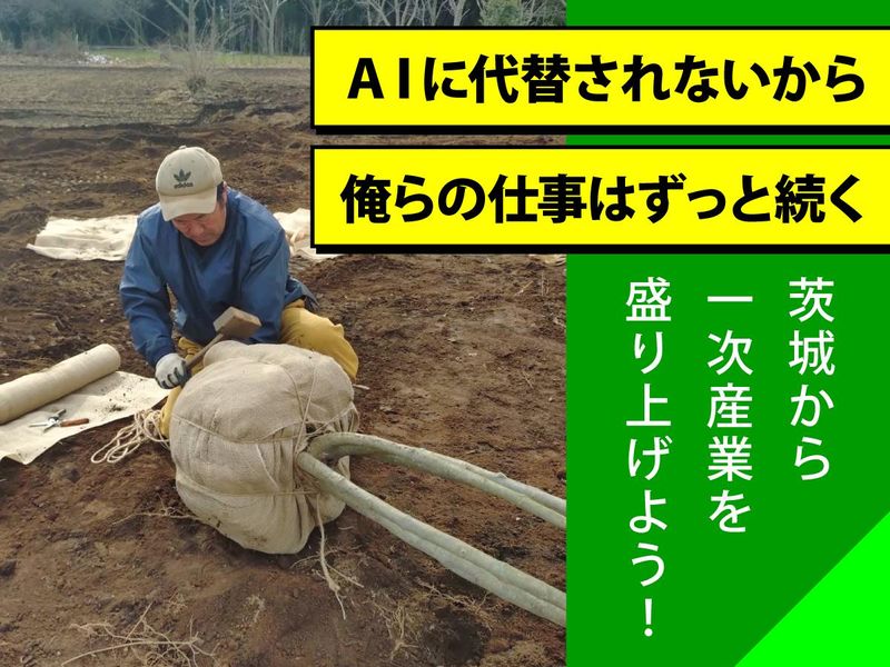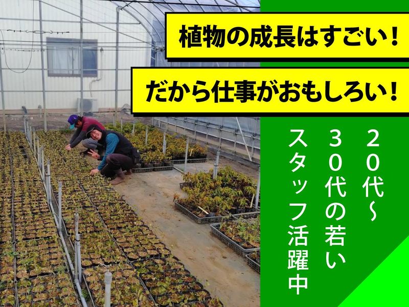 職種/仕事内容 | 仕事内容 植木の生産・管理・出荷作業を中心に担当していただきます。【造園の施工ではありません】 主にソヨゴ、ハナミズキ、ブルーベリー等約20種類以上栽培しております。 <具体的には> ■生産(育てる作業) ・苗木、植木の植え付け ・植え替え(鉢上げ) ・土づくり等 ■管理(品質を整える作業) ・剪定、整枝作業 ・肥料 ・除草、消毒 ・病害虫チェック等 ■出荷(出荷準備) ・注文に合わせた掘り取り、抜き取り ・検品(サイズ・樹形・傷み確認) ・根巻き、枝折り作業 ・積み込み等 =============== 育てた木が、街の風景になる =============== 自分たちで育てた樹木が、街や施設の風景の一部となり、人々に癒しや潤いを与えていく。 『休』という漢字は、人(にんべん)が木に寄り添う形。木には、心や体をふっと軽くする力があります。 植木生産は、その“力”を育て、届ける仕事です。お客様が「いい木だね」と喜んで植えてくれる瞬間が、この仕事のいちばんのやりがいです。 =============== 単調な仕事がないから面白い =============== 私たちが育てるのは、植物です。命ある存在のため、季節や天候に配慮した作業が求められます。 朝・昼・夕で作業が変わりますし、春・夏・秋・冬でも作業が変わります。 健康にすくすくと育っていけるように、観察して、考えて、最適な作業を選んでいく。 単調な仕事は一つとしてないから、常に工夫しながら作業する面白さを味わえます。 ============== 次世代へ事業を継承したい ============== 今この仕事を動かしているのは、社長とその息子(27歳)と、40代と20代の社員です。 少数精鋭の会社のため、将来的に中心となって事業を牽引してくれるメンバーを増やしたいと考えています。 少人数だから全ての作業に関わってもらう為、自分自身の成長が見えやすいのが魅力です。 会社の未来を担う主要メンバーとして、一緒に会社を盛り上げてくれませんか? ============= 20代の社員が活躍中です ============= 彼は「社長、これやったことないのでやってもいいですか?」と意欲的にチャレンジするタイプです。 入社して2年ほどで一通りの仕事ができるようになり、次の世代にバトンを渡す一人として急成長を遂げています。 新たな環境で成長していきたい方を全力で育てていくので、ぜひどんどんチャレンジしてほしいと思っています。 ============== 無理なく働ける環境です ============== 休憩時間が10時に15分、12時に50分、15時に15分。 その他にも、こまめにリフレッシュできる時間を設けているため水分補給もしっかり行いながら、体への負担を抑えて働くことができます。 =================== 社員インタビュー/20代Kさん =================== 造園の施工会社で2年間勤務してから、入社しました。 この仕事の魅力は、自社製品の品質の良さだと思います。第三者からの評価が高く、会社が目指してきた「一流のもの」を実現できていることを感じています。 実際に品質の高さが認められて、世界的なイベントや都心の高予算の現場で採用されるなど、たくさんのお客様がいることが嬉しく、誇りです。 |