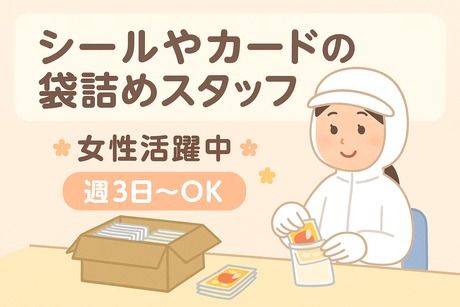 職種/仕事内容 | 仕事内容 【仕事内容】 \お菓子のシール・カードを袋に入れるだけ♪/ 人気のお菓子に付いているシールやカードを仕分け・封入するお仕事です! 扱うのはキャラクターもの♪ 見ているだけでワクワクします! ★お仕事内容★ ライン作業でコツコツ進める軽作業です! 箱からシールを取り出してラインに流す 入れやすいようにばらけさせる 向きをそろえて袋に入れる お菓子やパンにつけて箱に詰める 重いものは一切ナシ! 未経験でもすぐ慣れるカンタン作業です♪ ★働きやすいポイント★ 20~40代の女性スタッフ活躍中! 週3~6日までOK!自分のぺースで働ける◎ 大型連休あり 空調完備で年中快適♪ 【アピールポイント】 20代~40代女性活躍 週3~OK 大型連休あり 空調完備 【勤務地の補足】 埼玉県川口市弥平 |