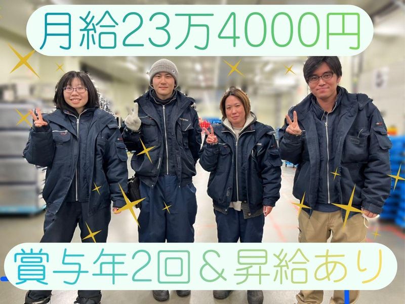 職種/仕事内容 | 仕事内容 ●○●○●○●○●○●○● 未経験歓迎!経験を積んで ゆくゆくは倉庫管理者への キャリアUPも目指せます! ●○●○●○●○●○●○● 冷凍食品などを扱う倉庫で、 ✅入荷商品の検品・格納 ✅出荷する商品の仕分け ✅棚卸し作業 をお任せ! \コツコツ作業がしたい方にピッタリ!/ 指示通りに商品を検品したり、決められた棚に収納したり、数の確認をしたりするシンプルな作業です。 冷凍倉庫での業務ですが、防寒対策はしっかりしているのでご安心ください◎ずっと倉庫内で作業するのではなく、適度に休憩も取りながら働いています! 体を動かすことが好きな方や、「モクモク働きたい」「人と接する機会が少ない仕事がいい」という方にピッタリのお仕事です。 \ステップアップができる!/ 作業や仕事の流れを覚えた後は、「スタッフ管理」「商品管理」「安全衛生管理」「収益管理」などの倉庫マネジメント業務にも挑戦可能! 未経験から倉庫運営について学べる環境で、長く働きながら成長が目指せます♪ ▶おすすめPOINT◀ ⭐未経験活躍中♪ 軽作業デビューやブランクがある方も大歓迎!未経験からスタートした先輩が多数活躍している職場です。 難しい作業はないので、コツコツ取り組めばすぐにお仕事にも慣れていただけます♪ ⭐運動不足も解消! 体を動かしながら働けるので気分もスッキリ! 「じっと座りっぱなしは苦手」「延々と同じ作業は飽きちゃいそう…」という方にもおすすめです♪ ⭐安定収入&キャリアアップも可能! 月給23.4万円+賞与年2回(業績による) 随時昇給ありで努力がしっかり評価されます! 長期で働くことでキャリア&収入アップが目指せる環境です◎ |