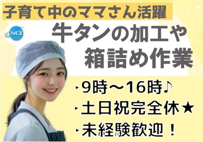 職種/仕事内容 | 仕事内容 《牛タンの加工や箱詰め作業》 ◎牛タンの加工を行っている工場で下記作業を行って頂きます! 具体的な作業内容は‥ ・牛タンの下処理(余分な部分を包丁でカット) ・冷凍した商品の箱詰め作業 ♦経験不問!未経験スタート歓迎!! ご家庭でするお肉の下処理と同様! 扱う種類は異なりますが、包丁を使って皮や脂肪を取り除く作業なので、難しい技術は必要ありません! ♦ママさん多数活躍中! 9時~16時のパートタイムの時間帯なので子育て中のママさんにもオススメ! 働いている方の定着も良く、長く続けられる環境です♪ ♦快適環境でお仕事♪ 作業場は温度設定もバッチリ! 暑すぎず、寒すぎないので快適な環境です! ♦嬉しい完全土日祝休み♪ お休みは完全土日祝♪ お盆や年末年始など長期連休もしっかりあるのでご家族との時間も大切にできますよ! |