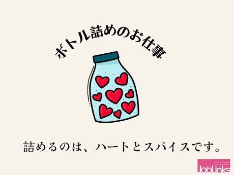 職種/仕事内容 | 仕事内容 高時給でシンプル作業!未経験から始める快適スパイス工場スタッフ 大手スパイス工場で、香り豊かなスパイス製品に囲まれて働く 軽作業スタッフの募集です。 お任せするのは、製品の目視検品、袋詰めや瓶詰め、梱包、 箱詰めといった、どなたにも分かりやすい シンプルな作業。 複雑な機械操作や重い荷物の持ち運びは ほとんどないので、工場での勤務が未経験の方や 体力に自信のない方も、安心して始められます。 職場は空調完備で一年中快適。 清潔な作業エリアや、リラックスできる休憩室、 プライバシーも守れる鍵付きロッカーなど、 働きやすさにもこだわっています。 実際の作業は、分かりやすいマニュアルと丁寧な研修、 現場担当者のサポートがあるため、 初めてでも安心して覚えることができます。 また、土日祝休みでプライベートの時間もしっかり 確保できるので、無理なく安定した生活リズムを 保てます。 日々のコツコツとした作業が評価につながり、 頑張りが直接収入やポイント特典にも反映される 仕組みでモチベーションもアップ。 長期で働きたい方にぴったりの環境で、 あなたの新しいチャレンジを応援します。 手厚いサポート&充実福利厚生で、あなたの「はじめて」も安心! 社会保険や有給休暇、交通費全額支給などの 充実した福利厚生が整っているのはもちろん、 24時間いつでもご相談いただける専用窓口があり、 困ったときもすぐに相談できるので安心です。 さらに、入社後も担当スタッフによるフォローが しっかり受けられるため、一人で悩むことなく 新しい環境にスムーズに馴染めます。 通勤スタイルも柔軟で、車・バイク・自転車通勤が可能。 休憩時間には快適な休憩室でリフレッシュでき、 鍵付きロッカーで大切な持ち物もしっかり管理できます。 毎日の頑張りは働いた分だけポイントとして還元され、 日用品や家電などの素敵な商品と交換できる 嬉しい特典制度も。「もっと長く働きたい」 「安定した環境でキャリアを築きたい」という方に 最適な職場です。 週払い制度(規定あり)の利用も可能なため、 急な出費が発生した場合も安心。 福利厚生やサポート体制がしっかりしているからこそ、 未経験からでも不安なくスタートでき、 自分らしい働き方を叶えられます。 ステップアップ制度あり!成長も収入も目指せる環境 キャリアを積み重ねたい方に最適な 成長環境が整った職場です。 日々の作業を着実にこなすことで、 少しずつ新しい業務やスキルにも チャレンジができます。 実績や意欲がしっかり評価されるため、 リーダー業務や工程管理など、 キャリアアップを目指したい方にも 大きな可能性が広がります。 また、資格取得支援や外部研修の 参加サポートも充実しているので、 未経験から知識やスキルを高めたい方も 安心。 正社員登用の実績もあり、 将来を見据えて安定して働きたい方に ぴったりです。 「今の自分をもっと成長させたい」 「自分らしくキャリアを築きたい」という 想いをぜひ叶えてください。 あなたのチャレンジ精神と前向きな姿勢を しっかりフォローする体制で、 長期的に活躍できる仕事です。 スムーズ入社!WEB面談&職場見学でしっかり確認できます 応募から入社まで安心のフォロー体制で、 誰でもスムーズに新しいスタートが切れます。 まずはご自宅やお好きな場所から参加できる WEB面談で、ご希望や気になる点を丁寧に ヒアリング。 実際の職場の雰囲気を確認できる職場見学も 実施しているので、働く環境やスタッフの様子を 事前にチェックできます。 配属初日はオリエンテーションで職場のルールや 役割を分かりやすくご説明。 その後はお仕事の流れを現場で実践的に学ぶ OJT研修があるので、未経験の方でもしっかり 自信を持って始められます。 不安や疑問があれば、担当スタッフが一つひとつ 丁寧にサポート。 気になることはいつでも相談できるから安心です。 また、勤務地は通勤しやすく、転居や転勤の 心配もありません。 新しい環境や職種へのチャレンジを後押しする サポート体制があるので、一歩を踏み出す際の 不安を和らげ、気持ちよくお仕事を始めて いただけます。 あなたのスタートを全力でサポートします。 ポイント制度でやりがい倍増!貯まったポイントは商品と交換OK 日々の頑張りがカタチになるポイント制度は、 やりがいを高めながら楽しく働き続けたい方にぴったり。 勤務時間に応じてどんどんポイントが貯まり、 日用品、家電、有名ブランドの商品券など 多彩な景品と交換できます。 お仕事を続けるほどプチご褒美が手に入るので、 仕事のモチベーションも自然とアップ。 さらに、お友達やご家族を紹介いただいた場合には、 嬉しい追加ポイントもプレゼント。 日々の努力が目に見える形で還元されるため、 「もっと頑張りたい」という気持ちを後押しします。 また、日常の急な出費にも安心の週払い制度(規定あり)を導入。 給与面の不安もカバ