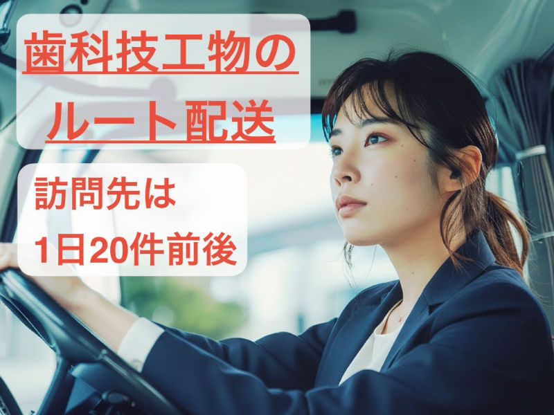 【アピールメッセージ】 (軽自動車ルート配送)日祝休みで月30万以上可能 即日勤務OK!固定コースで歯科技工物の軽貨物配送 \歯科技工物のルート配送の軽貨物ドライバー募集!/ 約1週間程度の同乗研修あり、しっかり準備をしてお仕事を開始できます。 勤務時間は9:30~17:30の日勤のみ。 歯医者さんや技工所などに技工物や材料を納品するお仕事ですので、基本日祝休みとなります。 当案件は女性のドライバーさんが多く在籍していて、荷物も軽量物になります。 契約は6ヶ月以上必須、1年毎の更新となります。 ・長期の案件をお探しの方 ・安定した収入が欲しい方 ・独立して「個人事業主」「フリーランス」を目指している方 ・運転するのが好きな方 ・接客業が好きな方 ・ルート配送案件をお探しの方 にピッタリのお仕事です。 20代、30代、40代などの幅広い年齢層の方が活躍中。 即日スタート大歓迎! お気軽にお問い合わせ・ご応募ください!