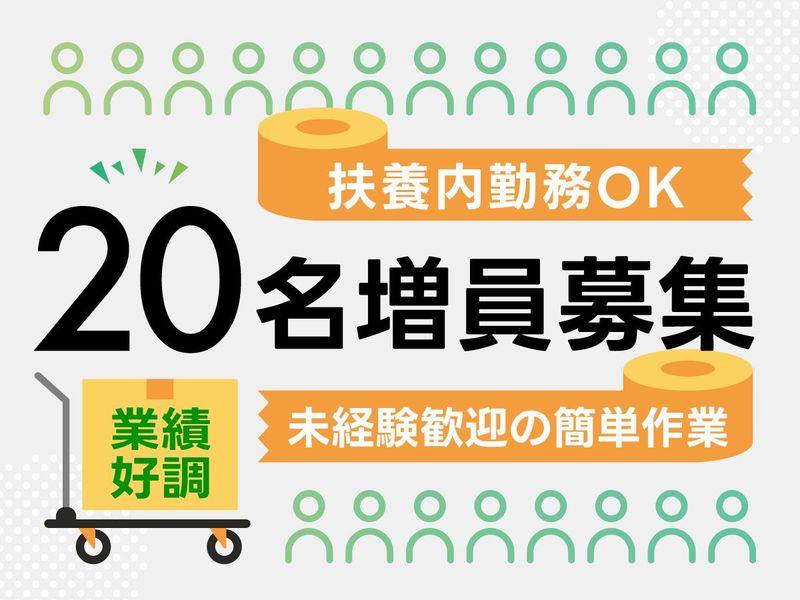 対象となる方 | 求めている人材 \未経験スタート大歓迎!学歴・経験・年齢不問/ 【こんな方歓迎です!】 ✅未経験の方、お仕事にブランクがある方 ✅主婦・主夫さん、フリーターさん ✅コツコツ・モクモク作業が得意な方 ✅チームワークを大切にできる方 ✅プライベートの時間も大切に働きたい方 ✅安定した会社で長く働きたい方 ★20代~50代の女性スタッフが多数活躍中です! ★倉庫内作業(仕分け・ピッキング・梱包)の経験がある方も、もちろん歓迎! |