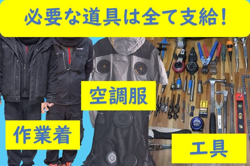 待遇・福利厚生 | 【保険制度】 雇用保険、労災保険、健康保険、厚生年金 【福利厚生】 【加入保険】 社会保険完備(健康 厚生年金 雇用 労災) 【福利厚生】 ■昇給(随時昇給) ■賞与年2回あり ■健康診断年1回 ■試用期間あり(3ヶ月/条件同一) ■退職金制度あり(中小企業退職金共済) ■作業着支給 ※靴以外はすべて(安全帯、ヘルメット、空調服等) ■空調服支給 ■工具一式支給 ※必要な道具はご用意します!身一つで入社OK!! ■社用車あり ■マイカー通勤OK ■電話手当あり ■ドリンク支給 ■お給料日にお弁当支給(例:焼肉弁当や仕出し弁当) ■BBQや忘年会や社員旅行あり(希望者の方でOK!) |