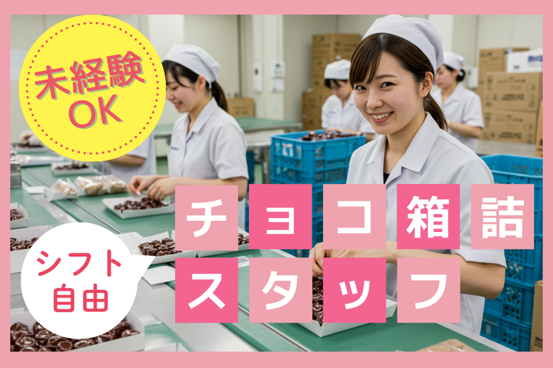 職種/仕事内容 | 仕事の内容 人気のスイーツ軽作業 \チョコレートを箱に詰めるだけ!/ 一口サイズのチョコレートを、 ラインで流れてくる小箱に詰めていくだけの とってもカンタン&シンプルなお仕事です♪ 特別なスキルや経験は一切不要! 未経験スタートのスタッフも多数活躍中です◎ 【お仕事内容】 ・チョコレートの箱詰め作業 ・ライン作業で流れてくる箱に詰めるだけ ・目視での検品、包装などの付随作業もあり 【1日の流れ(例)】 ◎初日は8:45〜ビデオ研修あり ・8:50 点呼 ・9:00 午前の作業(箱詰め) ・12:00 お昼休憩(1h) ・13:00 午後のライン作業 ・15:00 小休憩(15分) ・15:15 検品などの軽作業 ・18:00 終礼・業務終了! 【ここがポイント】 チョコを詰めるだけのシンプル作業 シフト自由で働きやすい♪ 商品は軽量!体力に自信がなくても安心 車通勤OK&無料駐車場あり 初心者・ブランクありでもすぐ活躍◎ 20〜50代の女性を中心に活躍中! 甘い香りに包まれて、気持ちよくお仕事しませんか? ご応募お待ちしています |