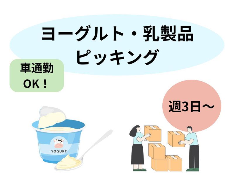職種/仕事内容 | 仕事内容 \\アピールポイント// ✅最短2か月~OK!ヨーグルトや乳製品商品の仕分け ✅車・バイク・自転車通勤OK ✅週3日~勤務OK!プライベートとの両立も楽々 ✅16時~勤務開始!スキマ時間を有効活用, 【お仕事内容】 ヨーグルトや牛乳等スーパー等に売られている乳製品の仕分けをするお仕事をお任せします。, 【具体的には・・・】 ・倉庫内でのチルド商品のピッキング ・スーパー等のヨーグルトや牛乳等のピッキング ・商品の検品・整理 ・出荷準備の補助 など 始めは先輩スタッフに付いてお仕事の流れや どこに何があるかを覚える所からスタート! 困ったときや分からないことがあったときは すぐ先輩スタッフに確認・相談ができるので 安心してお仕事に取り組める環境です◎ |