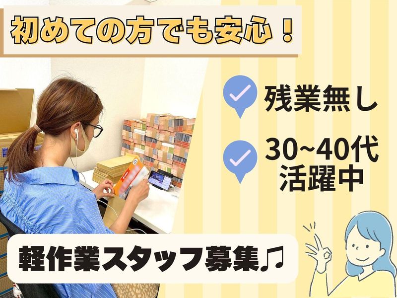 職種/仕事内容 | 仕事内容 未経験・ブランク有りでも安心のカンタン軽作業スタッフ大募集! 「子育ても少し落ち着いたし、そろそろお仕事を始めたいな」 「家事やプライベートと両立できる仕事がいいな」 「ブランクがあるから、カンタンな作業からスタートしたい」 そんなあなたにピッタリのお仕事がここにあります! お願いするのは、チラシを封筒に入れるだけのシンプルな作業です。 ・特別なスキルや経験は一切必要ナシ ・座り仕事がメインなので、体力的な負担は少なめ♪ ・残業は一切発生しません!予定が立てやすい♪ 付随業務として、以下を想定しています。 ・届いたチラシの受け取り、内容確認、報告作業をお任せします。 分からないことがあっても、丁寧にサポートするのでご安心くださいね! 【アピールポイント】 未経験者大歓迎! → 難しい作業は一切なし、すぐに覚えられるお仕事です。 30代女性が多数活躍中! →同年代の仲間がいるから、すぐに馴染めますよ♪ 働きやすい環境 →残業一切ナシ!服装・髪型も比較的自由です。(業務に支障のない範囲) 週5日勤務できる方、優遇します! → もちろん、勤務日数や曜日はご相談に応じますので、まずはお気軽にご希望をお聞かせください。 |