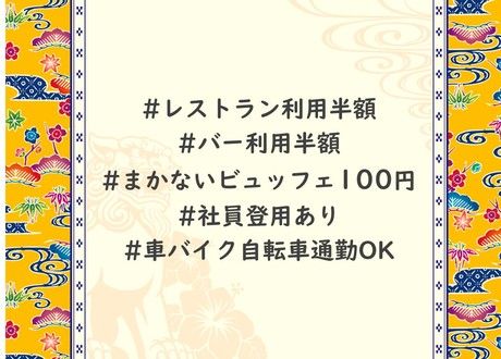 待遇・福利厚生 | 【保険制度】 雇用保険、労災保険、健康保険、厚生年金 【福利厚生】 待遇・福利厚生 【福利厚生】 ◆制服貸与 ◆個人ロッカー貸与 ◆社員食堂完備(ビュッフェ形式1食500円) ◆レストラン&バー利用割引き50%(規定あり) ◆交通費支給 ◆社員登用あり ◆車通勤、バイク通勤、自転車通勤OK(パーキング補助あり) など |