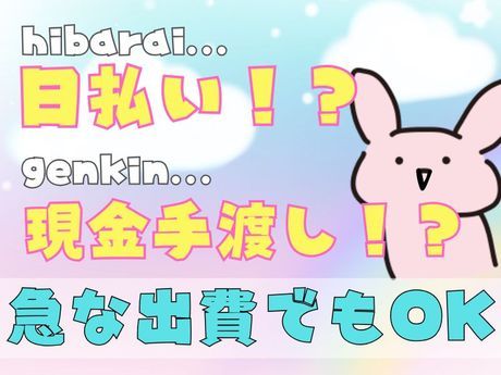 給与 | 時給1,327円以上 給与 時給 1327円以上 ◆全額日払い・現金手渡しOK(規定あり) 交通費:交通費支給 ※案件による |