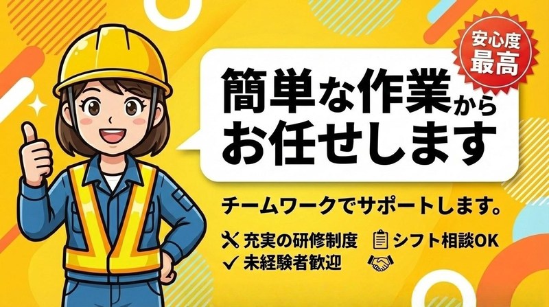 対象となる方 | 求めている人材 \一緒に働く仲間を大募集!/ 現場作業に興味があるけど未経験? 全然OK!ご安心ください♪ \ここがポイント/ •安全第一! ================== 未経験OK 学歴不問(中卒高卒OK) 経験不問 資格不問 車の免許お持ちの方も歓迎 ✅短期間収入で働きたい方もまずはご相談OK! 欲しいものや夢に向けてガッツリ稼ぎたい人にピッタリ! ✅過去の職務経歴・学歴一切不問! 【最近では下記の皆さんから応募入ってます】 コンビニスタッフ 販売接客サービス業 居酒屋のホールスタッフ 介護福祉 交通誘導・警備員 引越し作業 倉庫作業 仕分ピッキング 玉掛技能者 足場の組立て等作業主任者 職長・安全衛生責任者 スポーツジムのインストラクター 働きながら筋トレしたい方 収入UPしたい理由で頑張っている方多数! |