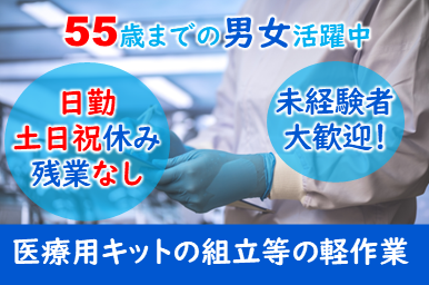 医薬品メーカーでのお仕事★軽作業!残業なし!インフルエンザ用検査キットの組立作業です!日勤・土日祝がお休みでプライベート充実します◎