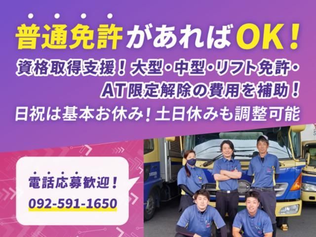 対象となる方 | 資格 普通免許があれば応募可能!(AT限定可) 学歴不問/未経験歓迎 【こんな方におすすめ】 ・地元で安定して働きたい方 ・夜勤なしで生活リズムを整えたい方 ・家族との時間を大切にしたい方学歴不問!未経験歓迎! 【 歓迎条件 】 ・フォークリフト免許(入社後の取得も可) ・引越作業員としての勤務経験者 ・什器搬入や搬出の経験をお持ちの方 ・引っ越しドライバーの経験者 ・体を動かす仕事に抵抗の無い方 |