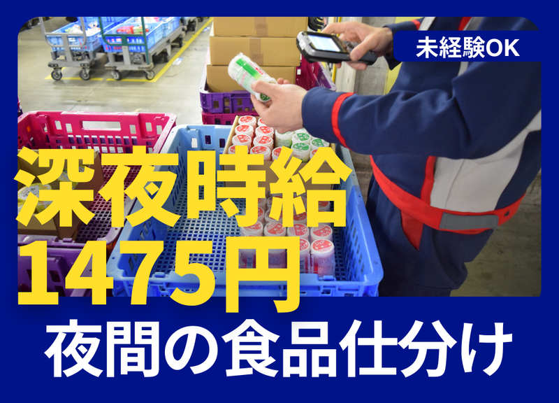 職種/仕事内容 | 仕事内容 \この春始める、シンプルワーク♪/ ✨週3日~勤務相談OK ✨19時~翌3時の夜間専任 ✨22時以降は“時給1475円”! ✨土日はさらに時給100円UP! ================== 【電話でもご応募・問い合わせOK!】 採用担当者と直接話したい方は、 お気軽にお電話ください。 TEL:0666830027 (受付時間:9:00~17:00) までお気軽にどうぞ。 ★WEBからの応募はサクッと1分でOK! 24時間ネット受付中! ================== <✅仕事内容は…> 稼げる夜間の物流倉庫内仕分け作業 ▼具体的には… ・乳製品やチーズなどの加工食品の仕分け ・配送先ごとに台車に載せて整理 …と、未経験の方でもスグにできる シンプルなお仕事です! 近くに先輩や社員も作業しているので 安心して働くことができます。 分からないことがあれば、 面接時に気軽に相談してください。 面接時に職場見学も可能です。 |