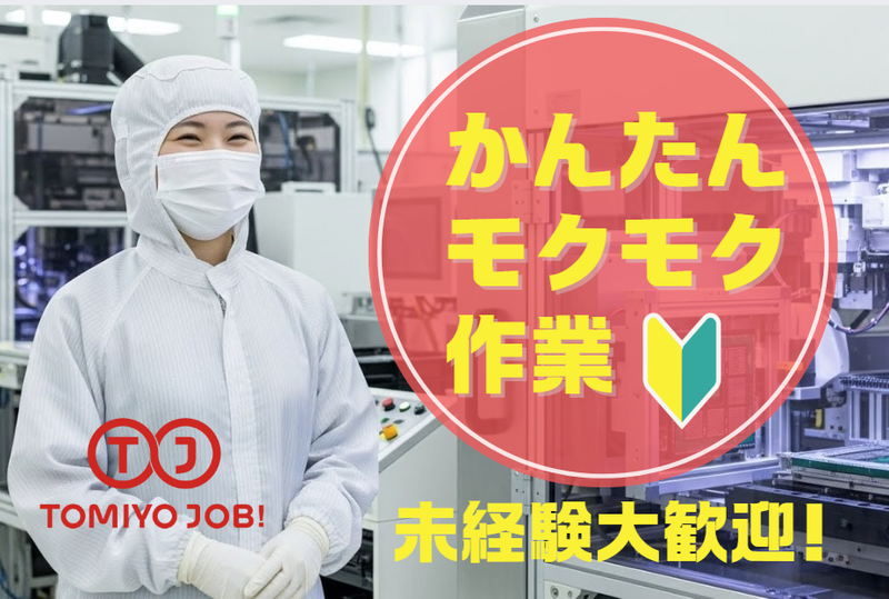 職種/仕事内容 | ■仕事内容 \すぐ馴染めるカンタン作業/ 半導体製造装置を構成する部品の 検品・仕分け作業をお任せします。 きれいなクリーンルームでの作業です! *<具体的な作業内容>* *小さな部品の仕分け *バーコードで入庫した部品の検品 *台車を使用した部品の運搬 *\未経験スタートのスタッフ多数!/* 今いるスタッフのほとんどが、 まったくの未経験から始めています。 作業はイチから丁寧にお教えするので、 「工場は初めて…」という方も 安心してスタートできます。 ★コツコツ作業が好きな方、 安定した環境で働きたい方にぴったりです! |