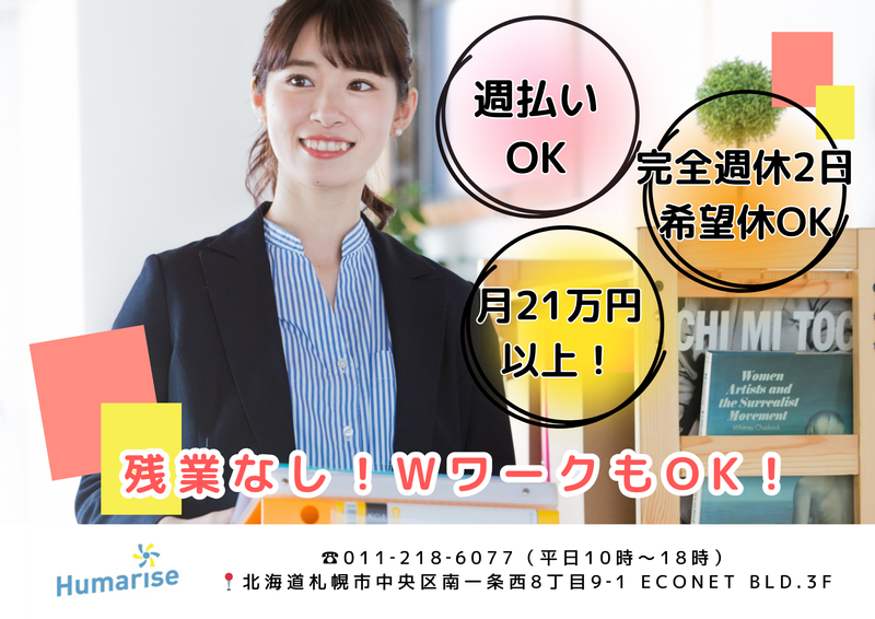 職種/仕事内容 | 仕事内容 \大手物流会社で働く!勤務開始日相談◎/ 【夕方スタート×女性スタッフも活躍中】 未経験OK!PCが苦手な方も安心◎ ▶時給1400円~1750円|週払いOK| ▶17:00~24:30|16:00開始もOK! ▶マイカー通勤OK!無料駐車場あり ▶面談1回|履歴書不要|WEB面談OK *…………………………………* ◆ お仕事内容 ◆ 大手物流会社のセンター内で、 事務作業やカンタンな軽作業などの お仕事にチャレンジしませんか! <主な内容> ・伝票の仕分け・整理 ・ドライバーさんの出発確認 ・商品の移動 など PC業務は少しだけなので 苦手な方も安心してください◎ 来客対応や電話対応もほぼないので 黙々と庶務業務に集中できます! *…………………………………* ◆応募方法◆ WEBなら1分カンタン応募! 電話での応募も大歓迎です! TEL:011-218-6077 営業時間/10:00~18:00 (※12/31~1/4は電話受付休止) |