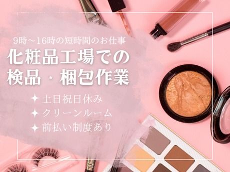 職種/仕事内容 | 仕事内容 具体的には 人気の化粧品に関わるお仕事♪ 短時間&土日祝休み◎ 有名ブランドの化粧品に携わるお仕事です。 ◆検査 完成したマスカラ、口紅、アイシャドウに傷や汚れがないかチェック ◆梱包 検品後の製品を箱詰めして出荷準備 ライン作業が中心のお仕事です◎ 短時間勤務&クリーンルーム作業で快適♪ 未経験でも丁寧に教えてもらえる環境なので安心です! |
