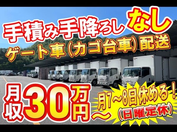 ✨熊本現地採用強化のため【入社祝金100万円支給】✨手積みなし&カゴ台車配送 ⭐昼から出勤で働きやすい準夜勤の4tルートドライバー募集中⭐