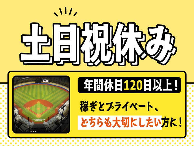 休日休暇 | 休日休暇 完全週休2日制(土日) 【年間休日】 120日以上 【休日休暇】 *GW休暇 *夏季休暇 *年末年始休暇 *有給休暇(平均取得日数14日/5日以上の連続休暇も可) *慶弔休暇 *産前産後休暇 *育児休暇(取得実績100%) |