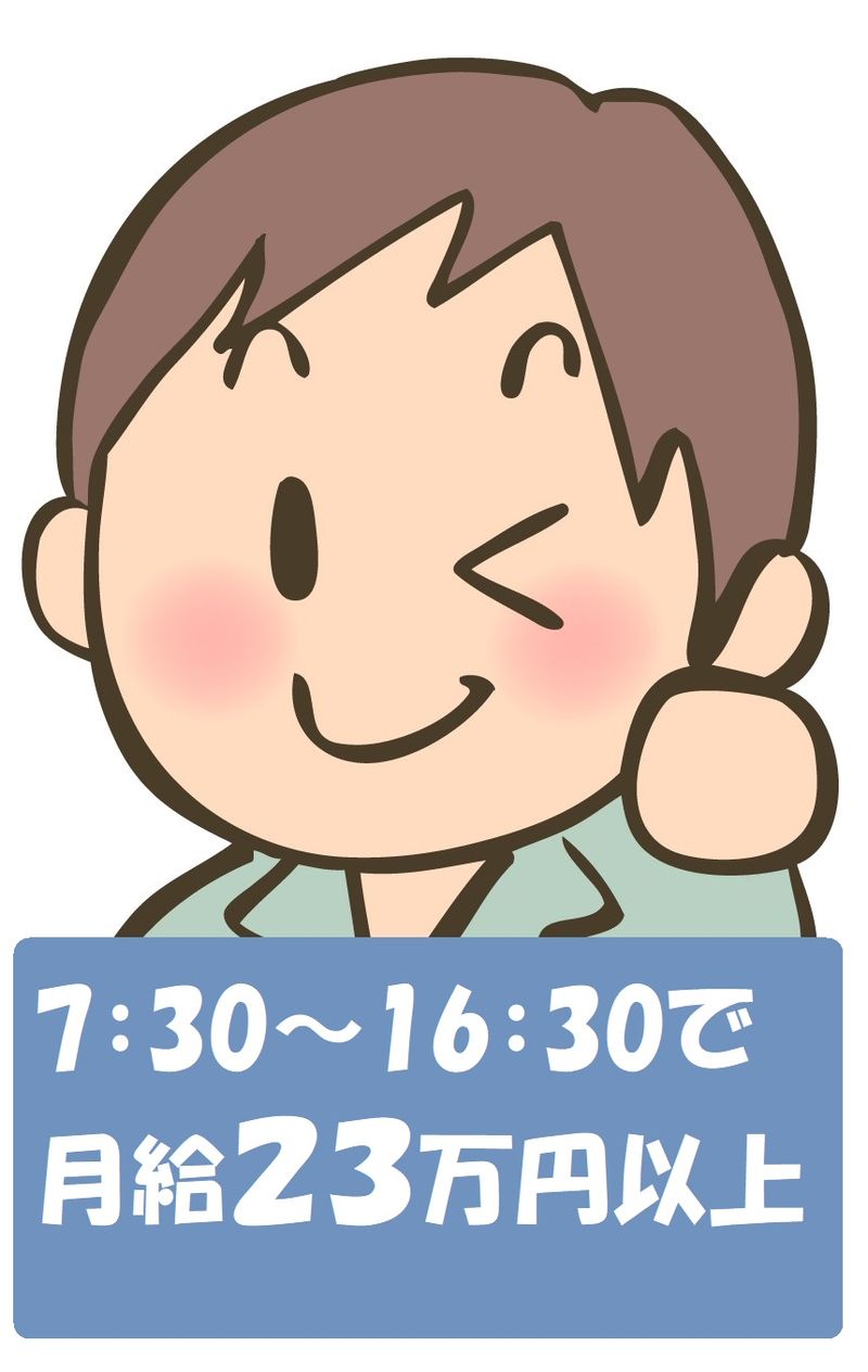 【7:30~16:30で月給23万円以上です】◎幅広い年代の男性が活躍中です