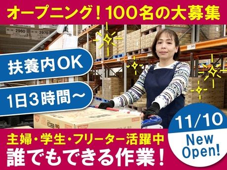 途中入社のハンデ無し!オープニングスタッフ!1日3時間~/日曜休み/誰でもできる簡単作業/扶養内OK