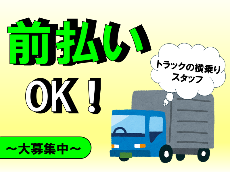 職種/仕事内容 | 仕事内容 ☆運転免許不要 ☆シニア応援 ☆未経験大歓迎 〈業務内容〉 トラックの助手席に座って確認をするだけ^^ 補充先についたら、巻き込み確認やバック誘導をお任せいたします◎ その他、待ち時間にはカンタンなピッキング作業はありますが、 メインは補助業務ですので体力仕事はいっさいありません! 【環境を変えたい方、大歓迎!】 「フリーターじゃなくて週5日間しっかり働きたい」 「経歴に自信がない」 「難しい作業を覚えるのが苦手」 などなど、働くにあたって漠然とした不安がある方には特にオススメです! 資格、経験、経歴、学歴、知識は問いませんので、 「新しく始めたい!」という想いがあればOK◎ |