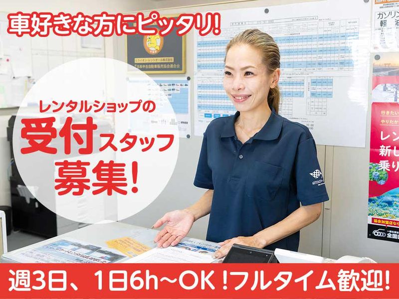職種/仕事内容 | 仕事内容 ◎レンタカーショップの受付や事務など ■■■■■■■■■■■■■■■ 地元で正社員になりたい。 だけど、未経験だから不安… そんな方はぜひ Gライオン・レントオールへ! アルバイト・パートから 正社員になった方も沢山います! 安心して始めていただける環境 をご用意していますよ☆ ■■■■■■■■■■■■■■■ ■■■<詳しい仕事内容>■■■ レンタカーショップでの接客や事務など 店舗スタッフをお願いします! <具体的には…> ・お店に来店されたお客様の対応 ・予約受付、電話応対 ・予約管理やレンタカー出発前の事務作業 ・事故や故障した車の代わりに 代車をお客様の元へお届け(回送) ・車の説明や傷の有無を確認 ・返却時対応 ・洗車 ※困ったときは経験豊富な営業所長の サポートやフォローがあるから安心! ■■■<未経験の方も安心>■■■ まずは先輩が簡単なことから 丁寧にお教えします! お互いに助け合う雰囲気がある あたたかい職場なので 安心して始めていただけますよ。 ■■■<仕事の楽しさ>■■■ ◎出発前 「どこにドライブに行くんですか?」 「オススメのカフェがあって…!」 「この道混みやすいので気を付けてね!」 出発前のお客様を気持ちよくお見送り! ◎到着後 「渋滞に巻き込まれる前に帰ってきました!」 「オススメのカフェよかったです!」 お客様とコミュニケーションを取れるのも 仕事の楽しさの1つです! ■■■<正社員をめざせる>■■■ まずはアルバイト・パートとして 受付や事務作業、回送など 基本的な業務を覚えて頂きます。 入社6ヶ月後から 能力や経験、頑張りに応じて、 正社員になるチャンスがあります。 試験は特にありません! 日々の業務を一通りできるようになり、 所長が推薦状を出し、 社内面談にて正社員登用が決定します! ■■■<キャリアパス>■■■ あくまでも一例ですが、 頑張り次第でもっと早く 昇格することも! 入社1~2年後:正社員 入社4~5年後:営業所の主任 入社5~7年後:所長代理 入社7~10年後:所長 |
