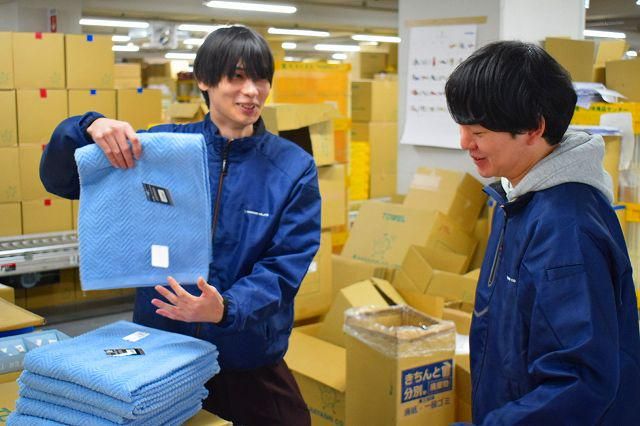 職種/仕事内容 | 仕事内容 ――――――――――――――――――― 「見学に来たら、なんか雰囲気が良くて」 転職に迷ってた僕が、ここで働く理由。 ――――――――――――――――――― 転職するときって めちゃくちゃ不安じゃないですか? ホテルフロントから転職した 佐々木(入社3年目・現主任)も、 最初はそうでした。 「未経験で物流なんて、できるかな」 リクナビネクストで見つけた当社。 創業以来70年余り、売上も大きいのに、 なんだか固くない雰囲気。 でも本当に未経験で大丈夫なのか不安で、 まず見学に行ってみたそうです。 そしたら、現場の社員さんたちが めちゃくちゃウェルカムで。 「あ、ここなら」って思えたのが 入社の決め手でした。 営業職から転職した 沖野(入社1年目)も同じ。 30歳の節目で「違う仕事やってみたい」 と思って物流業界を探していたとき、 見学で感じた雰囲気の良さに惹かれました。 「挨拶が元気で、みんな明るくて 親しみやすかった。求人で見た印象と 実際が全然変わらなくて、安心しました」 ――――――――――――――――――― 具体的な仕事内容は、こんな感じ。 入社前に必要なスキルはありません。 ――――――――――――――――――― 全国のお取引先様から タオル製品の注文を受けて、 正確に梱包して発送するお仕事です。 ▼主な業務 ・荷受け、発送業務 ・検針作業(タオルに針が残っていないかチェック) ・自動倉庫からの出庫作業 ・物流事務 15〜20kgの荷物を持つこともありますが、 正しい持ち方を先輩がしっかり 教えてくれるので安心してください。 自社システムで作業効率が良く、 みんなで協力しながらミスなく進められます。 実は当社、タオルの企画・デザインから 流通まで手掛ける国内シェア トップクラスのタオル商社なんです。 ――――――――――――――――――― で、この会社の何がいいかって。 「全体作業」っていう文化があるんです。 ――――――――――――――――――― トラック一台分の荷物が届いたとき、 急に招集がかかって全員で積み下ろし。 バケツリレーみたいな感じで、ワーッて。 事務所にいる役職者も参加するし、 社長もたまに来る。これ、 「業務が一人に集中しないように、 みんなで協力していこう」 っていう風土が 自然にできあがってるんですよね。 朝礼では今日の出荷量を共有して、 ラジオ体操(自由参加)もあって。 「顔色見てお節介焼く人が多い」 って沖野が笑って教えてくれました。 世話焼きとお友達になりたがり屋が 多い職場なんです。 ――――――――――――――――――― 「自分の意見を通しやすい」のも、 当社ならではかもしれません。 ――――――――――――――――――― 「この現場やりたいです」 「ここの進め方、こう変えたいです」 って相談すると、 リーダーの答えは基本「やってみたら!?」。 前任者がいても、 自分のやりたいスタイルを貫きやすい。 マニュアル通りじゃなくて、 あなたらしく働けます。 実際、倉庫作業から事務職へ キャリアチェンジした社員もいます。 本人の希望と能力を重視して 人員配置を考えているから。 ――――――――――――――――――― 働きやすさも、ちゃんとあります。 ワークライフバランスは充実しまくり。 ――――――――――――――――――― ✅年間休日125日・土日祝休み ✅17時15分定時・残業ほぼなし ※繁忙期に少し残業することは ありますが、基本は定時帰り。 ✅プレミアムフライデー実施 ✅全館空調完備 ✅給与アップ&昇給・賞与あり ✅資格取得支援 ちなみに、運動会(健康推進イベント)があったり、 各周年行事の社員旅行が盛り上がったり、 花見用にバーベキューできる桜を植えたり。 部署の飲み会も全社イベントもいっぱいあります。 創業以来70年余りずっと黒字経営の安定企業で、 未経験から腰を据えて働きませんか? |