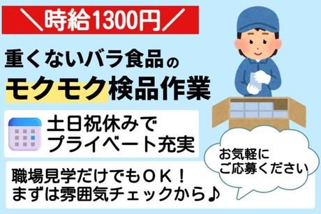 【車・バイク通勤もOK】バラで軽い!食品の検品スタッフ/土日祝休み◎