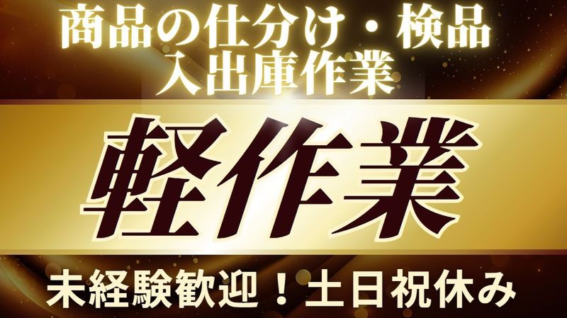 職種/仕事内容 | 仕事内容 商品の仕分けや検品、入出庫作業です。 物流センターでの作業です。 < おすすめポイント > ・未経験スタートOK ・土日祝休みで残業なし ・空調完備の快適空間 ・給与週払いもOK < お仕事詳細 > 商品の外装や外箱の検品 出荷する商品を決められた個数に仕分けたり ハンドフォークを使い入出庫をしていただくお仕事です。 < 未経験者の方もOK > 経験のない方でも安心してスタート出来るよう マニュアルを用意しております。 また、ベテランの先輩スタッフが教える 研修を行いますので分からない事は 近くの先輩に聞きながらお仕事が出来ます! < 経験あれば活かせる! > 未経験スタートでも大丈夫ですが、 以下のような経験あれば活かせます! ・物流業界や物流倉庫での勤務経験 ・製造工場などの倉庫での軽作業 ・ピッキングや梱包の経験 ・出荷や入出庫や荷受けの経験 パート・アルバイト・派遣などの 雇用形態不問、短期や単発などの 期間も不問で採用中! < 職場環境 > 空調設備はきちんと完備されています。 外気温に左右されないため、 工場社員にとって働きやすい環境が整っています。 < 職場見学OK > 詳細な仕事内容は職場見学にて ご説明いたします。 気になる点や不安点など、 職場見学を通して確認してみてください < お気軽に連絡ください! > 先ずは見学してみませんか? お電話での応募もOK! ご不明な点はお気軽にお問合せください |