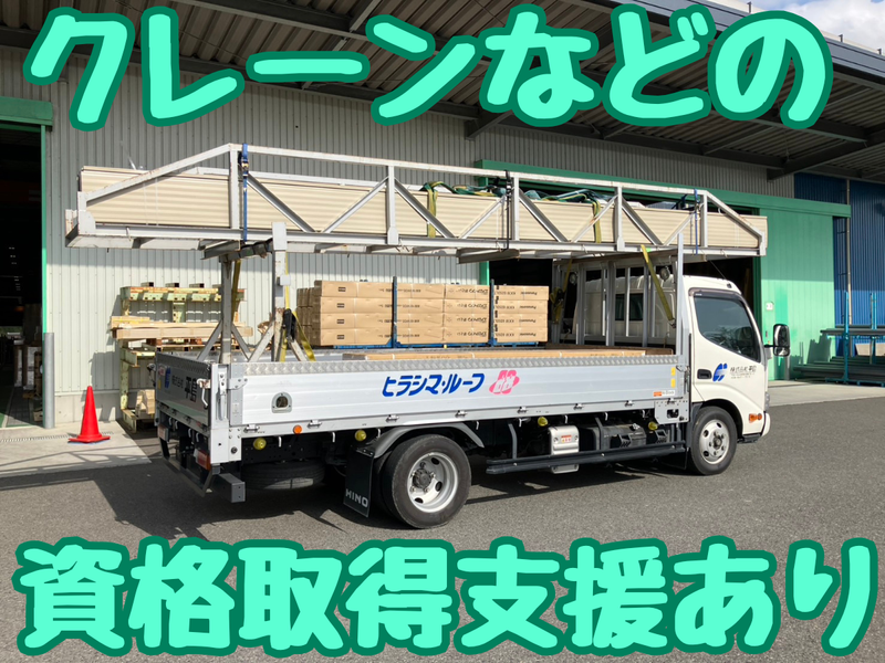 職種/仕事内容 | 仕事内容 \自社新工場開設につき配送社員も増員/ 中型免許or大型免許をお持ちの方必見✨ 日勤のみの中距離配送のお仕事です! 創業100年超の老舗メーカーで、安定した仕事量と働き易い環境◎ そして、2026年末までに入社した社員はなんと!会社全体で2030年までに給与が「12.8%」UPすることが決定しています✨ また、会社負担での資格取得もあり、スキルを磨きながらお仕事ができます。 <仕事内容> 自社の中型トラックまたは大型トラックにて、お客様よりご依頼いただいた納期・納入先へ配送します。基本的には、営業が受注した商品の積込・配送業務となります。 資材倉庫からの材料ピックアップ及び重量物はクレーンやフォークリフトでの積込作業を行います。納入先は日々異なりますが、配送する担当エリアは決まっているので安定的です◎ <1日の流れ(例)> 08:00~ 配送 会社出発 11:00~ 会社に戻り、注文確認。午後配送分の材料積込み 12:00~ 昼休憩 13:00~ 配送 16:00~17:30 会社に戻り、注文確認。翌日配送分の材料積込み ※配送場所や納入指定時間によって日々スケジュールは変わります。 ※早出勤務をした場合は、勤務終了時間も前倒しになります。 ※残業代は別途支給します。 <トラックの種類と必要資格> 自社トラックは、2t、4t、10tがありますが、入社後は2tまたは4tからお任せしていきますのでご安心ください◎ 必須免許は、中型自動車免許 歓迎免許は、フォークリフト、玉掛け、大型自動車免許、クレーン・デリック運転士免許、床上操作式クレーン運転技能講習、小型移動式クレーン運転技能講習など。 会社負担で資格取得支援もあるので、働きながら資格が取れますよ◎ <扱う製品> 住宅・学校・工場などに使われる、薄い金属の屋根や外壁材を自社工場で製造しています。建物によりサイズや形が違うため、積み方も様々です。写真参照ください✨ <配送エリア> 熊本県を中心に、遠方だと竹田市や柳川市、延岡市あたりまでの中距離で、配送先は1日5件程度です◎ \✅この求人のおすすめポイント/ ✨会社負担で手に職をつけられる✨ 業務に必要な資格は、会社が費用を全額負担!取得できる資格は…天井クレーン、床上操作式クレーン運転技能講習、小型移動式クレーン運転技能講習、クレーン・デリック運転士免許etc…!また、配送業務がない場合でも、工場内作業の補助を行うため、仕事はなくなりませんので安心です◎ ✨キャリアステップ✨ 現場で活躍を続けたい方もOKですし、リーダーや作業長へのポジションUPも可能。新工場稼働に伴い、役割のチャンスが増えていきます◎希望をお気軽にご相談ください! ✨ワークライフバランス抜群✨ 日勤のみ+土日祝休み+年間休日114日で、プライベートを大切にしながら働けます。腰を据えて長く働きたい方にもぴったり◎ ✨給与UP施策✨ 2026年末までに入社された方は、2030年までに会社全体で12.8%の給与UPが決定しています。※会社施策(制度の詳細は面接時にご説明します)。 ✨12月から「オフィスで野菜」を導入✨ 事務所に設定予定で、社員は100円からお惣菜やサラダ、フルーツなどが購入可能です! 種類が豊富で飽きない+栄養バランスの取れた食事で健康維持にも◎ おいしいお昼が毎日の楽しみのひとつになりますよ♪ ✨今回の募集は、2026年12月頃までは中営業所(菊池市旭志町)での勤務ですが、2026年12月頃以降は新設工場(上益城郡御船町)での勤務を予定しております! 現在は、合志市、菊陽町、光の森周辺、熊本市中央区帯山、熊本市東区戸島、などなど、菊池市や上益城郡エリア以外からも通勤している社員が多数いますよ◎ ◆・・・・・・・・・・・・・・・・◆ <社員インタビュー> 入社動機や働き易さ、やりがいを聞いてみました! 【勤続3年/42歳男性】 地元で働きたいと思っており、「交代勤務がないこと」「転勤がないこと」が入社の決め手でした。集中できる環境なので、仕事をしていると時間の経過が早く、あっという間に終業時間となることが多いです。 【勤続5年/50歳男性】 前職では拘束される労働時間が長く家庭と仕事の両立ができなかったんですが、当社では残業時間をしっかり管理しワークライフバランスが取れた生活ができるようになりました。水曜日は会社がノー残業デーを推奨しており、皆で無駄な残業をしないよう取り組んでいます。 |