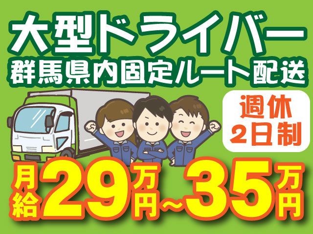 大型ドライバー/群馬県内の固定ルート配送/基本残業なし/週休2日