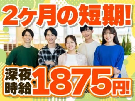 【短期×夜勤で稼げる】2ヶ月間限定時給1500円!深夜1875円☆小休憩中も給与発生!交通費全額支給