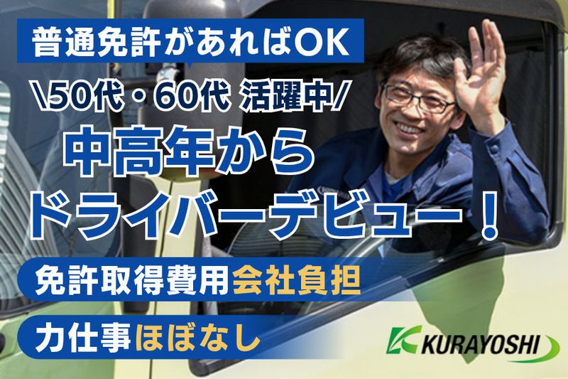 職種/仕事内容 | 【仕事内容】 \普通自動車免許(AT限定可)で始める/ 物流企業でルート配送ドライバーを正社員募集! 【このような方に最適】 ・中高年から新しい仕事に挑戦したい ・運転が好きで、一人の時間を大切にしながら働きたい ・離職率の低い安定した会社で働きたい 【仕事内容】 郵便局に集められた郵便物を、神奈川県内各市の郵便局本局へルート配送していただきます ・使用車両:4t車(MT) ◆入社後に中型免許取得可能! ・配送エリア:神奈川県内のみ(片道約1時間) ・件数:1日3~5件 【未経験OK】 ◆入社後は先輩が助手席同乗。積み降ろしから運転まで段階的にOJTで習得 ◆「事故ゼロ運動」で毎月勉強会を開催して安全意識と知識をアップデート 【ポイント】 1.決められた場所のルート配送なので、道も覚えやすい! 2.積み降ろしは台車利用で腰への負担が少ない! 3.公共インフラを支える郵便輸送で景気に左右されにくい! 4.中型免許取得費用は完全会社負担で、中高年も“学び直し”が可能! 5.安全装置&仕組み導入、携帯貸与で即時連絡OKで安心! 【職場環境】 平均年齢55歳で、40代50代も活躍中! 温厚な方が多く、離職率5%と非常に安定性の高い、働き続けやすい環境です 【株式会社倉吉運輸について】 2t/4t/10tトラックを保有する総合物流企業です 全車ドライブレコーダーとデジタルタコグラフを導入し、データを活用して事故防止を徹底 鍵の置き忘れアラートなど、“仕組み化”でヒューマンエラーを防ぐ独自装置も開発 安全第一で働ける環境づくりに徹底して取り組んでいます ~倉吉運輸公式SNSで情報発信スタート~ Instagram: kurayoshiunyu_official TikTok: kurayoshiunyu_official 最新情報はSNSで確認できますので、ぜひご覧ください! 当社のルート配送ドライバーへご興味をお持ちの方は、ぜひお気軽にご応募ください! ◆ご希望の方は1日体験OK(時給1,225円) |