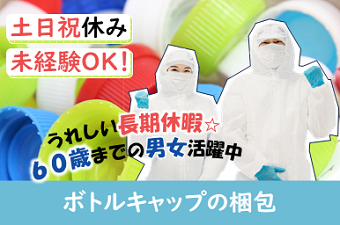 未経験でも安心の簡単作業♪ボトルキャップの梱包◎人気の日勤専属・土日祝お休み◎◎日勤じゃなく稼ぎたい方必見!3交替部署もご紹介可能◎