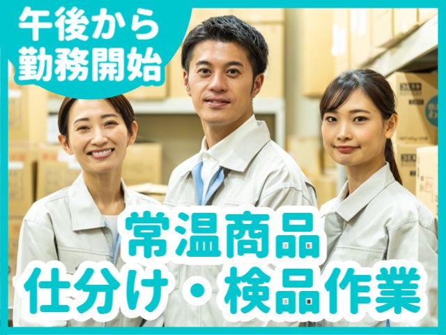 【常温商品仕分け・検品作業】 午後からスタート!倉庫デビューOK! 倉庫内作業未経験から始められます