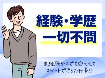 職場環境・雰囲気 | 職場環境 20~40代の男性スタッフ活躍中! 未経験スタートの方も多数在籍中です。 分からないことがあれば 先輩がフォローしてくれるので、 安心して飛び込んできてください。 喫煙所:喫煙所あり(屋内) |