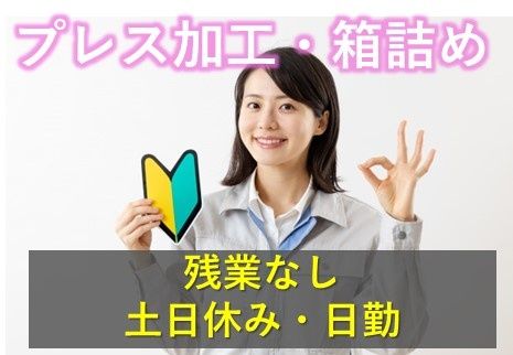 職種/仕事内容 | 仕事内容 自動車部品のプレス加工と箱詰め 1、素材(アルミや合金等)を機械にセットする作業 2、ペダルを踏む作業(機械が自動的に素材を加工します) 3、加工後の製品を機械から取り出して、箱に製品を詰める作業 ▼自動車部品のプレス加工と箱詰めのポイント▼ 〇残業なし・土日休み 〇経験は問いません! 〇週払い制度あり 〇応募する前に事前見学も出来ます ///////////////////////////////////////////////// 残業無し、土日休みのお仕事です 日勤で残業もありませんので、退勤後や土日のプライベートも充実させることができます。 育児や家事と両立しながら働くスタッフも活躍しています。 長期で働きたい人におすすめのお仕事です。 プレス作業経験者歓迎のお仕事 未経験者の方はご相談下さい。 作業内容はとても簡単なので、工場や倉庫作業の経験のない方でもすぐに活躍出来ます。 様々な年齢層の方が働いています 20代、30代、40代、50代、60代以上の様々な年齢層の男女が在籍。 昔ながらの町工場的な、アットホームな雰囲気の会社です。 お互いに気をつかわない、雰囲気の良い職場です。 まずは簡単なお仕事からスタートするのでご安心ください。 誰でも初めはイチからのスタートです、先輩正社員がワンツーワンで指導・研修を実施しております。 ※詳細な仕事内容は職場見学にてご説明いたします。職場見学を通して確認してみてください。 |